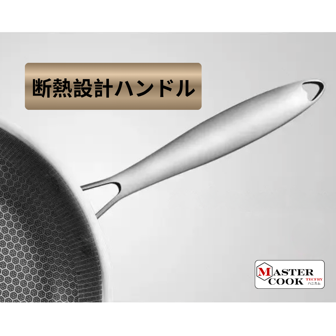 手にしっかりフィットする形状で、調理中の操作性を高めます。さらに熱伝導を抑える構造により、安心して使える安全なデザインです。