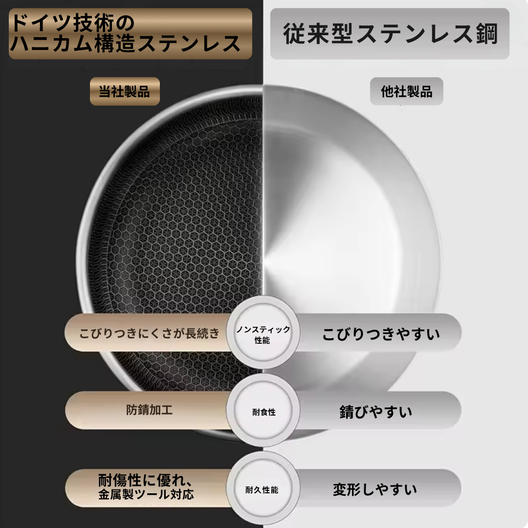 私たちのノンスティック技術は、油をフライパンの中心に保ち、少ない油で調理ができるよう設計されています。体にもお財布にもやさしい調理を実現します。