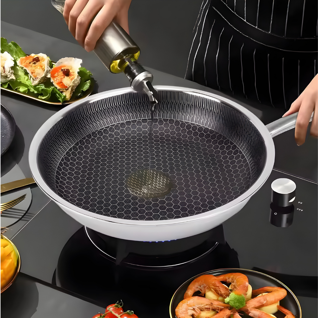 私たちのノンスティック技術は、油をフライパンの中心に保ち、少ない油で調理ができるよう設計されています。体にもお財布にもやさしい調理を実現します。